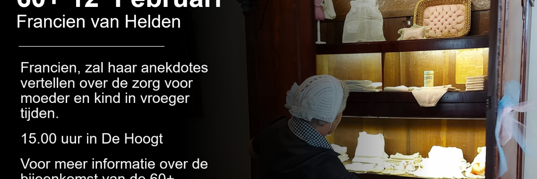 Op deze middag mogen we Francien van Helden uit Dussen verwelkomen. Ze is voor velen geen onbekende. In het verleden is ze ook al eens te gast geweest op de 60+. We kregen van verschillende mensen de vraag om haar nog een keer uit te nodigen.